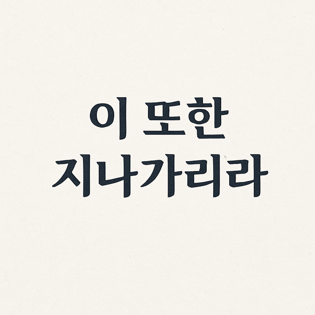 "이 또한 지나가리라."짧지만 깊은 울림을 주는 이 문장은 내가 힘들 때마다 꺼내보는 말입니다.괴로운 일이 생기거나, 감정이 무겁게 가라앉을 때, 누군가에게 말 한마디 꺼내는 것도 부담스러울 때, 나는 조용히 이 말을 떠올립니다. 그러면 마음속에 서서히 파도가 잔잔해지는 듯한 느낌이 듭니다. 살다 보면 크고 작은 시련이 끊이지 않습니다. 사람과의 관계에서 상처를 받기도 하고, 열심히 준비했던 일이 실패로 끝나기도 하죠. 때로는 원인을 알 수 없는 무기력감이 몰려와, 아무것도 하지 못하고 멍하니 하루를 보내는 날도 있습니다. 그런 날이면 나는 내가 너무 부족한 사람처럼 느껴지고, 앞으로도 계속 이런 날만 반복될까 봐 두려워집니다. 그럴 때 “이 또한 지나가리라”는 말은 지금의 고통이 영원하지 않다는 사실을..